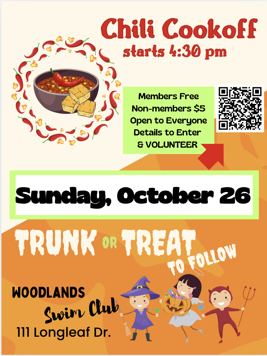 RSVP to let us know you are coming, Sign Up to enter your chili, or Sign up to Save a Parking spot for Trunk of treat!! Details on our Events Page.